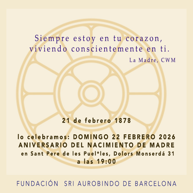 en el Mahasamadhi de Sri Aurobindo, conmemoramos el 8 de diciembre en el Monastir Sant Pere de les Puel.les a las 19:30